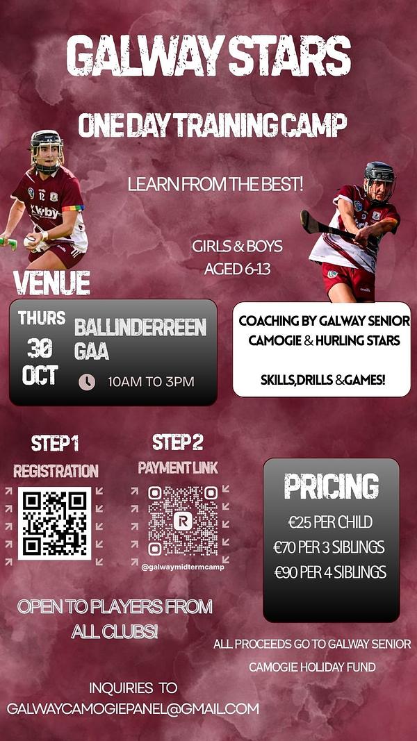 Join members of the Galway Senior Camogie & Hurling Teams for a day of skills, drills, games & fun π