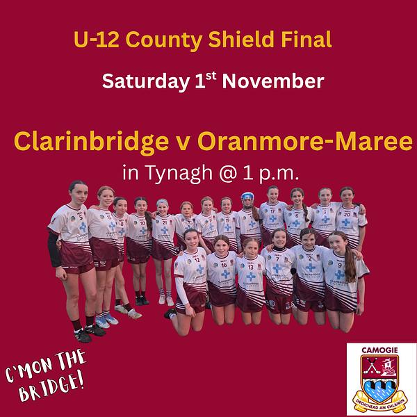 Our U-12 team take on neighbours Oranmore-Maree in the County Shield Final in Tynagh on Saturday at 1 p.m. We wish all the girls, and their management, the very best of luck. #upthebridge 🇱🇻🇱🇻🇱🇻